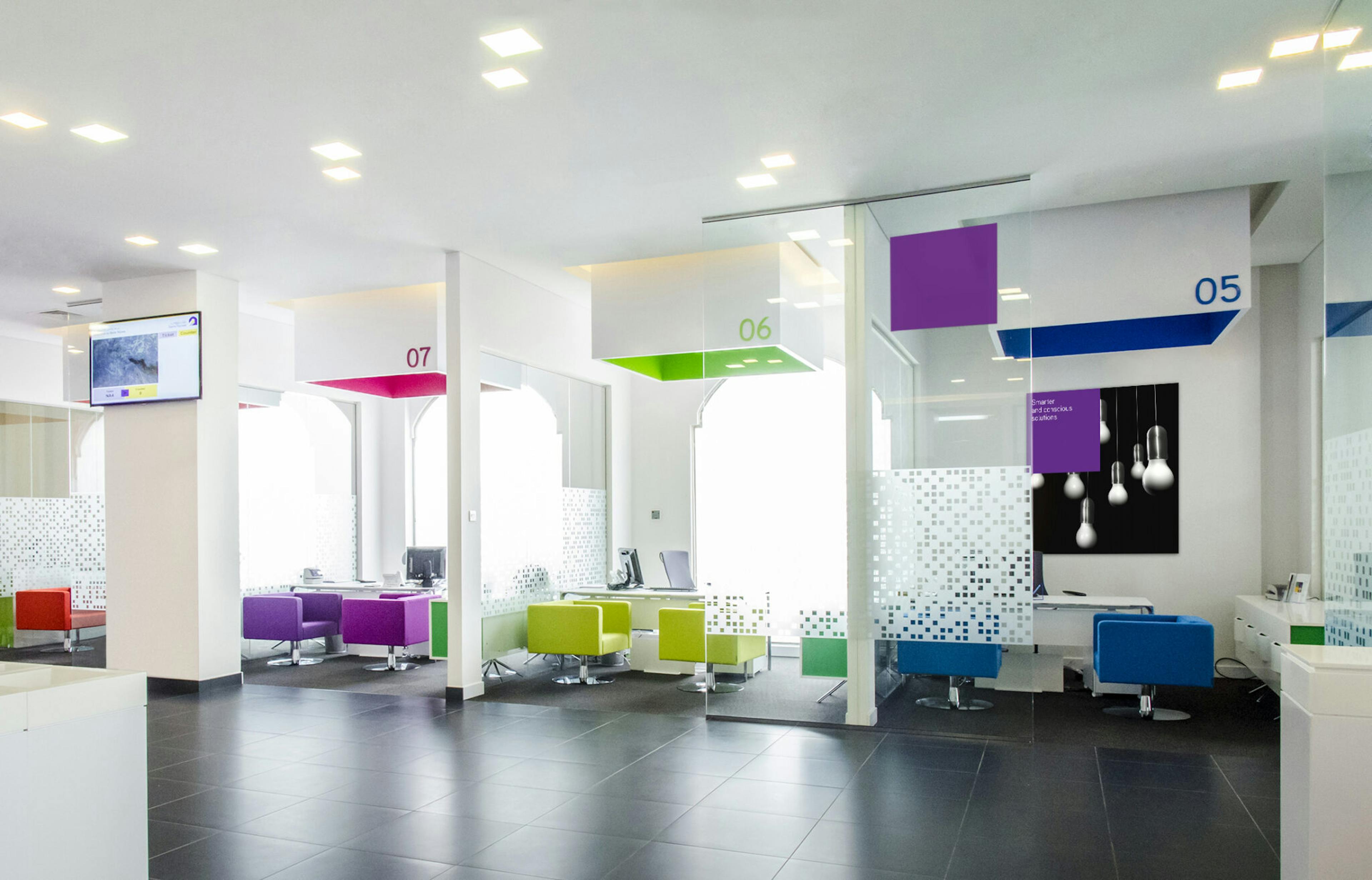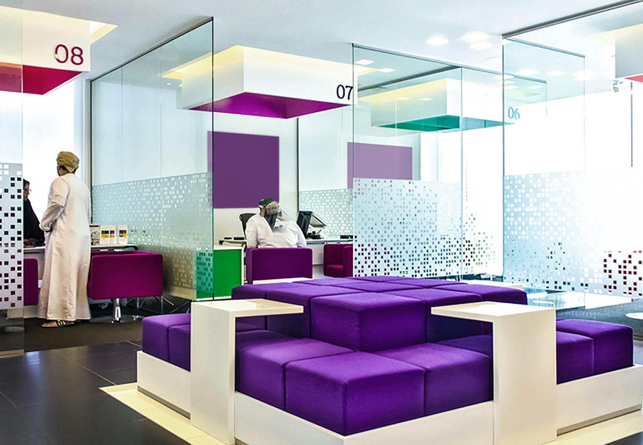 We worked closely with the leadership team to define the brand’s positioning and visual identity, then translated this into a retail experience that launched across three pilot branches. These spaces were designed to feel open, modern and welcoming, helping customers connect with the bank’s values in a tangible way. The same approach shaped the new headquarters in Muscat, where we created an environment that supported collaboration, focus and a strong internal culture. Every detail, from the main public areas to the leadership offices, was considered as part of a coherent and future-facing brand experience.